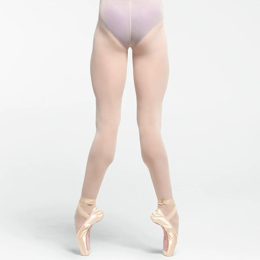 Mesh patterning in the heel and forefoot provides extra traction when wearing pointe shoes.